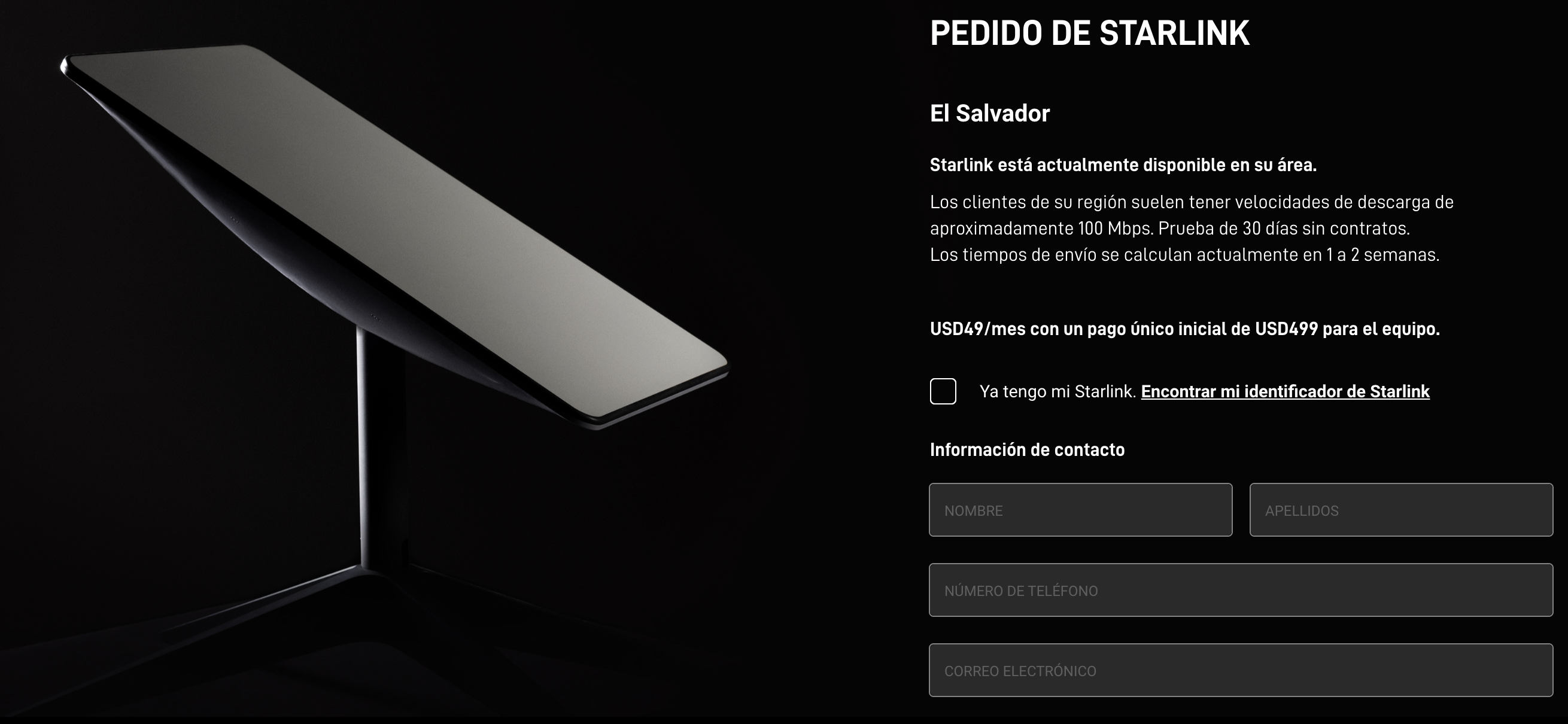 El servicio de Internet satelital del multimillonario Elon Musk, Starlink, anunció el inicio de operaciones en El Salvador, quien es el único país de Centroamérica en ofrecer el Internet de alta velocidad y tendrá un costo de servicio de 49 dólares, un pago por equipo de 499 dólares, más 25 dólares por gastos de envío.