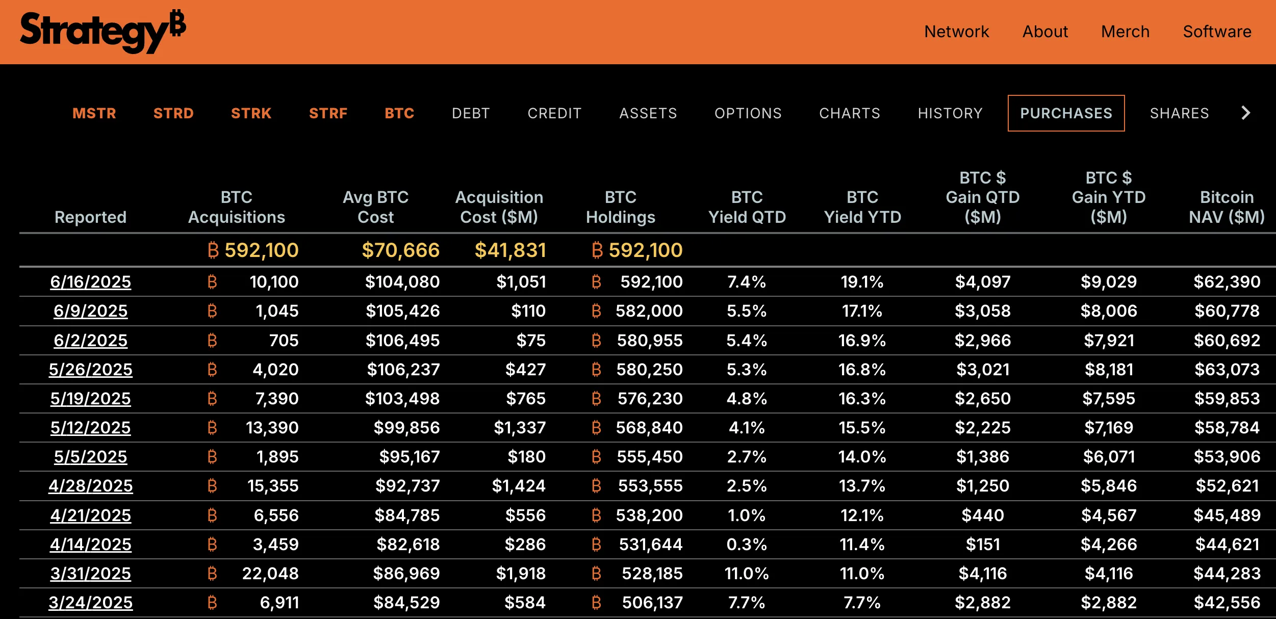 El agresivo plan de Bitcoin de Michael Saylor para Strategy (anteriormente MicroStrategy) continúa siendo fuerte, ya sea con sol o lluvia. Por ahora, no muestra signos de desaceleración. Con 592,100 BTC en su balance, Strategy es el mayor holder corporativo a nivel mundial.
