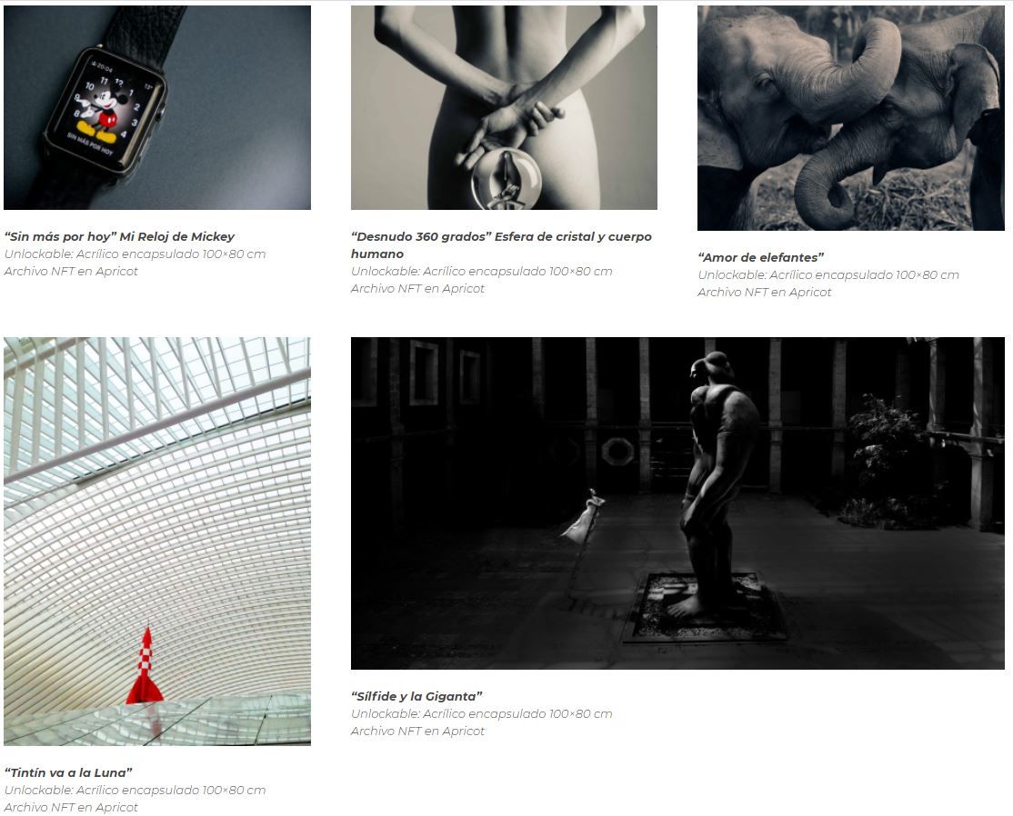 Algunas de las obras que se expondrán son “Sin más por hoy, Mi Reloj de Mickey”, que muestra un Apple Watch con fondo del icónico personaje de Disney. “Desnudo 360 grados”, que muestra una esfera de cristal y cuerpo humano, mientras que “Amor de elefantes”, es una fotografía en blanco y negro de dos paquidermos.