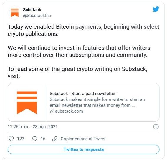 Substack, Bitcoin y Lightining Network