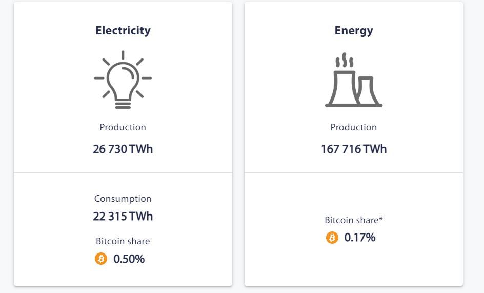 Bitcoin representa el 0,53% de la electricidad mundial, según cifras del Índice de consumo de electricidad de Cambridge Bitcoin.