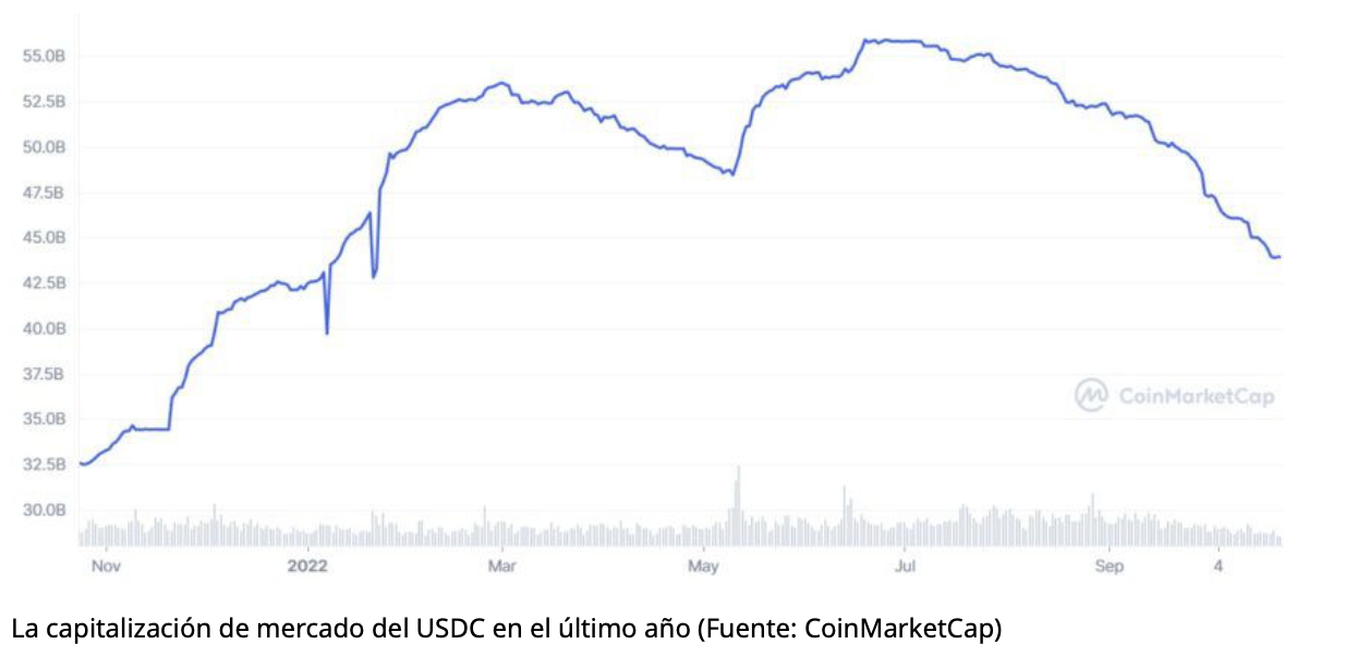 El USDC todavía controla alrededor del 28% del mercado de stablecoins. Su dominio como la segunda stablecoin más grande por capitalización de mercado se está reduciendo gradualmente. El suministro del USDC se ha reducido de 55,000 millones de dólares en julio a su oferta actual de 43,93 millones de dólares.