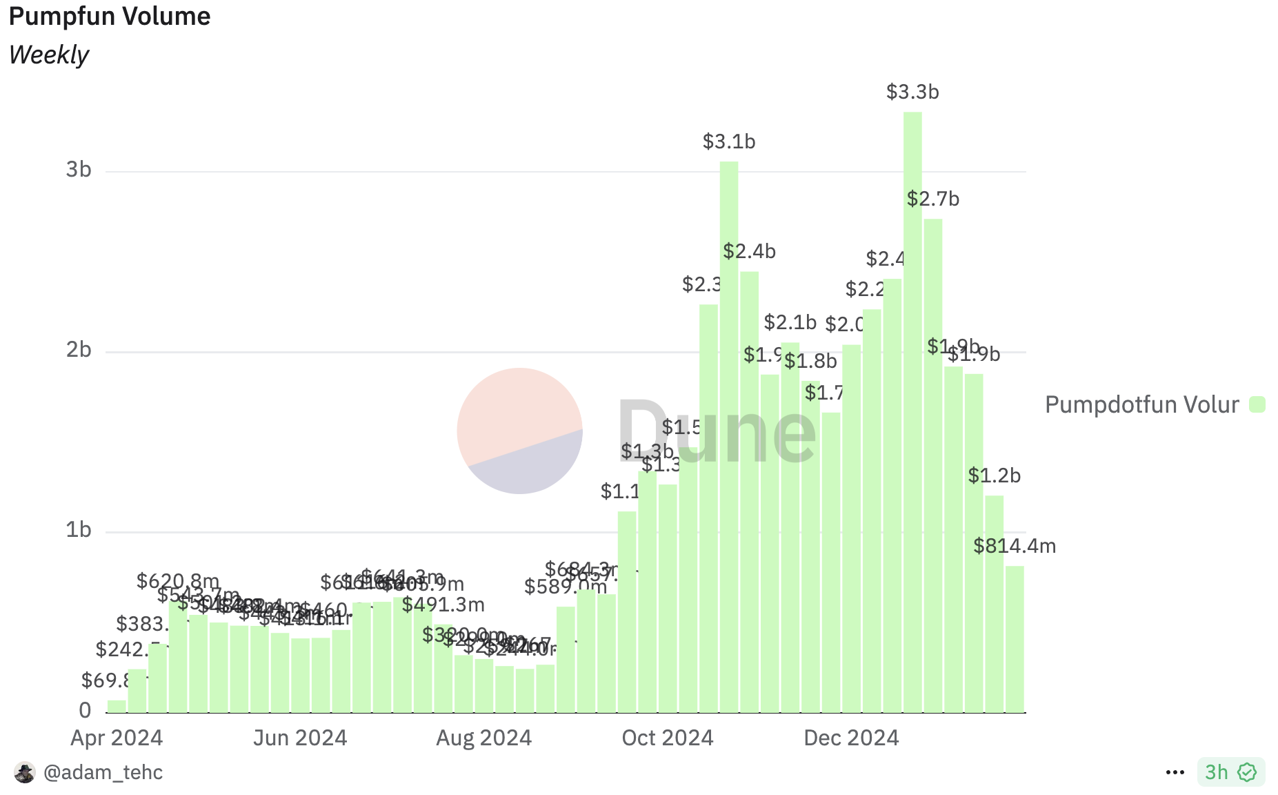 Pump.fun, un popular launchpad de memecoins, ha visto su volumen de trading caer de 3,3 mil millones de dólares en enero de 2025 a solo 814 millones de dólares. Esto marcó una caída asombrosa del 75.3%.