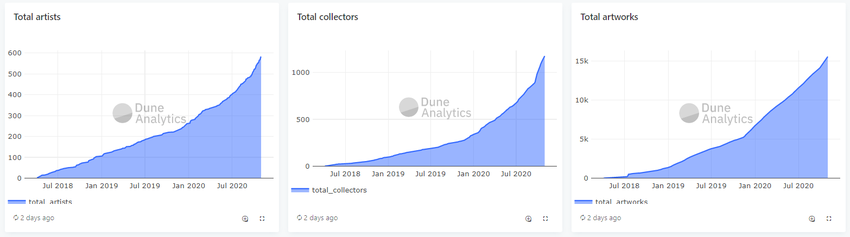 La plataforma anunció que se habían vendido más de 10,000 piezas de arte, y los artistas ganaron 3 millones de dólares. El rendimiento es un testimonio de la repentina popularidad de los NFT, que han coincidido con el entusiasmo del sector DeFi (Finanzas descentralizadas).