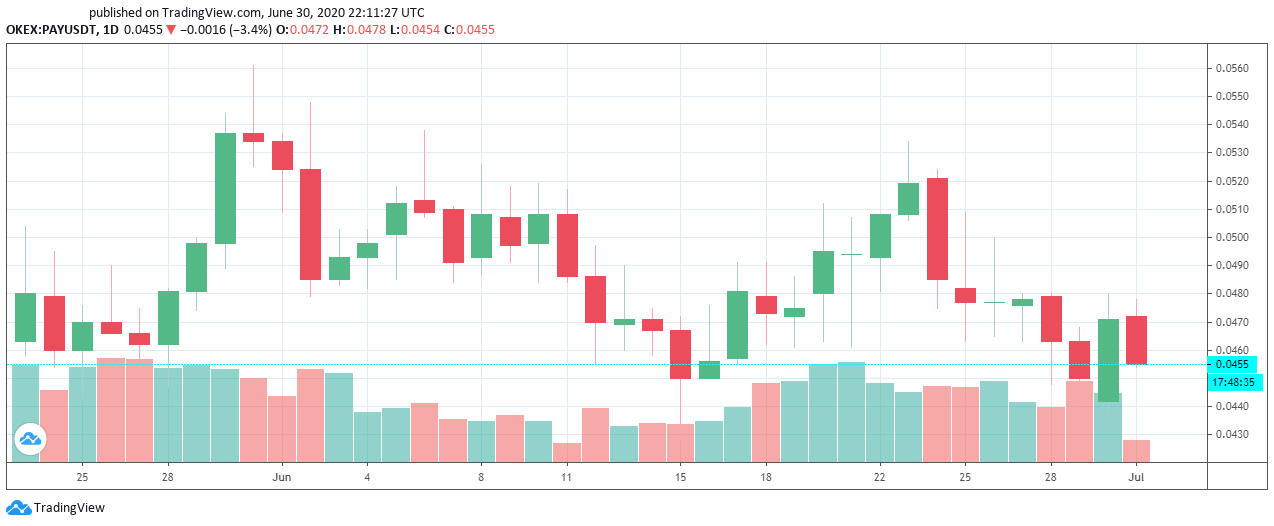 Mientras, el token PAY —la criptomoneda de TenX— mantuvo un canal horizontal, pasando de 0.0534 USDT hasta mínimos de 0.043 USDT.