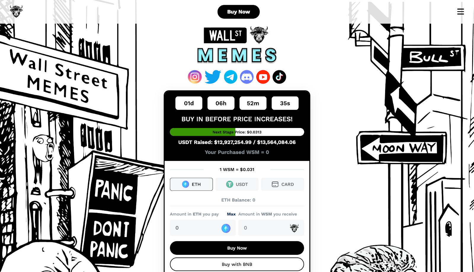 Los tokens WSM se pueden adquirir en la preventa a un precio de 0.031 dólares, y se espera que este precio aumente en la próxima etapa a 0.0313 dólares. Puedes comprar los tokens WSM usando ETH, BNB, USDT o incluso tu tarjeta bancaria.