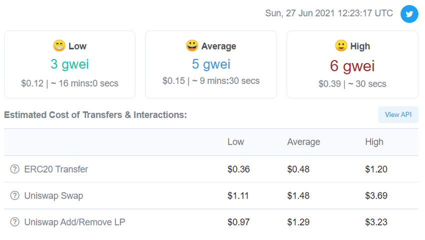 SponsoredEl domingo vio que la tarifa de transacción promedio necesaria era de solo cinco gwei, o 0,15 dólares.