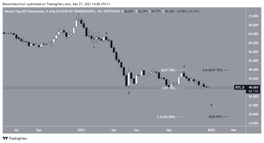 Todo el descenso desde principios de año parece un movimiento descendente de cinco ondas, en el que la BTCD se encuentra actualmente en la quinta y última onda.