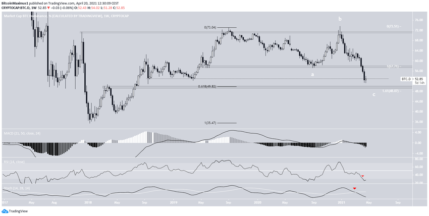 Por tanto, a largo plazo, es probable que la BTCD caiga hasta el 49,80%.