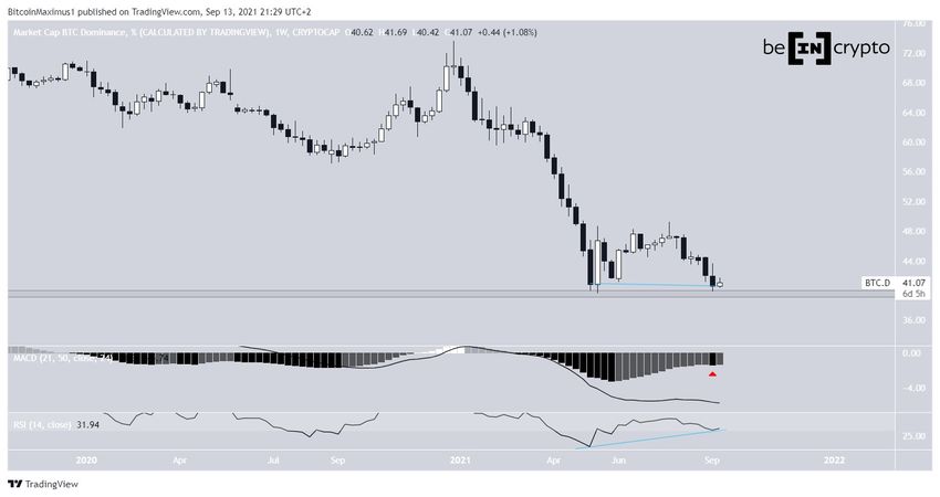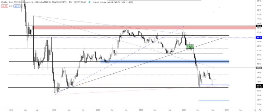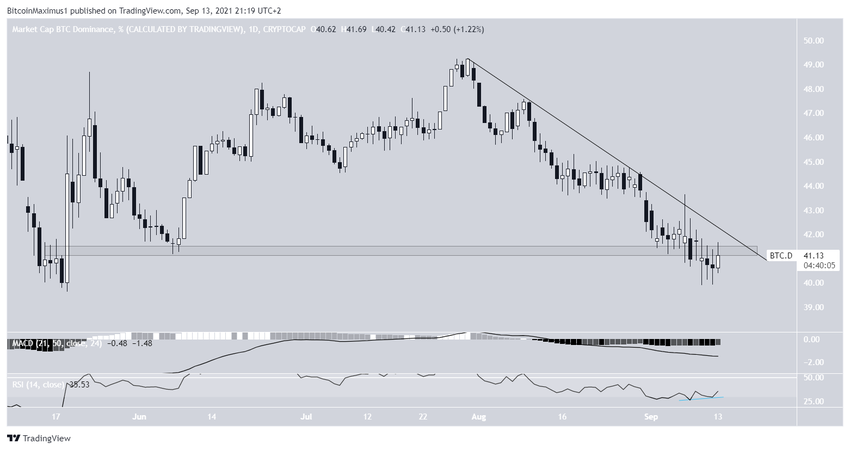Si bien la tasa ha rebotado desde entonces, la BTCD ha estado cotizando cerca del 40% durante las últimas dos semanas, lo que podría crear un patrón de doble fondo.