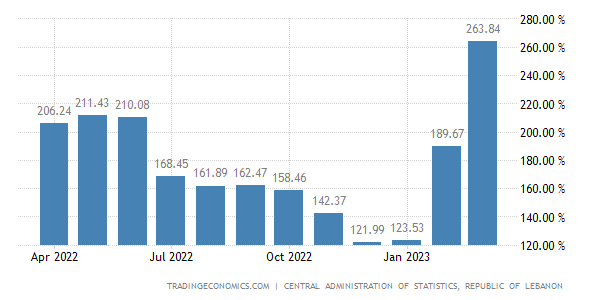 Líbano se enfrenta a una inflación obscenamente alta, con una tasa de inflación anual que aumenta al 264%. Esa cifra es superior al 190% de febrero.