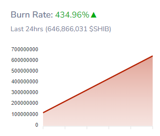 Al momento de la publicación, la tasa de quema de Shiba Inu registra un aumento del 434.96% en las últimas 24 horas, por un valor aproximado de 5,291 dólares.