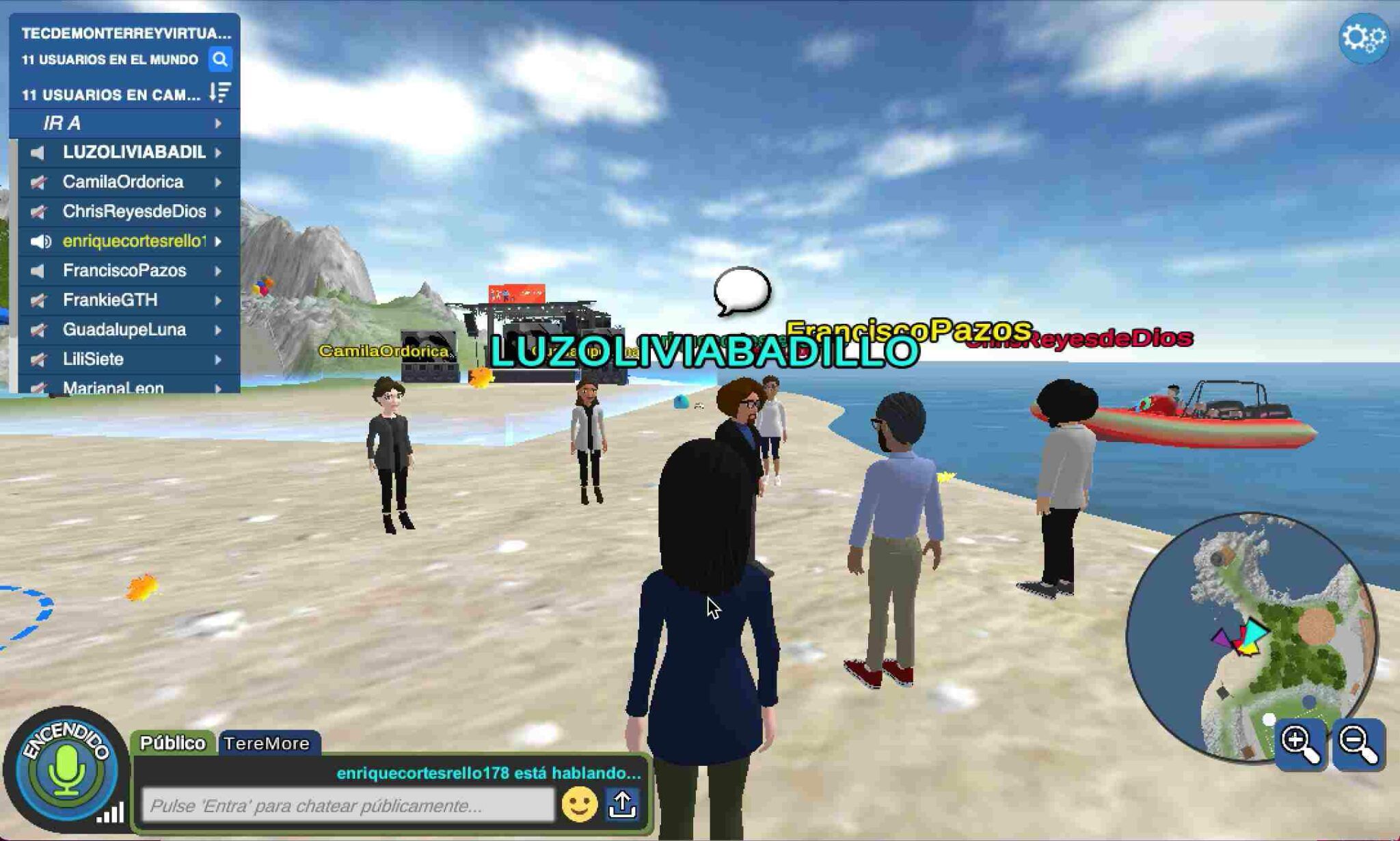 El Tec de Monterrey explica que para entrar a su Campus Virtual primero hay que diseñar un avatar y luego entrar a su campus y a las distintas áreas que tiene, caminar, un auditorio, tomar clases, caminar a la playa o explorar su mar virtual. En clase, se puede hacer zoom a detalles que señale el profesor.