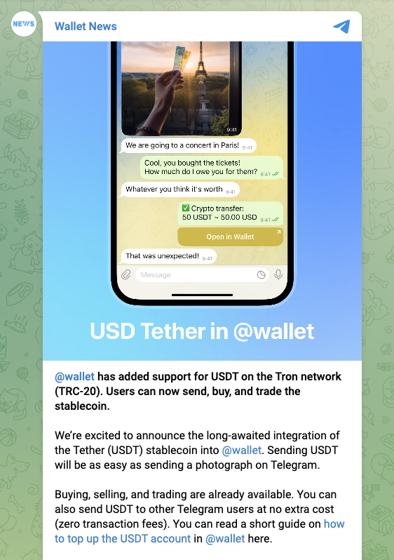 Telegram lo anunció desde su canal oficial Wallet News: