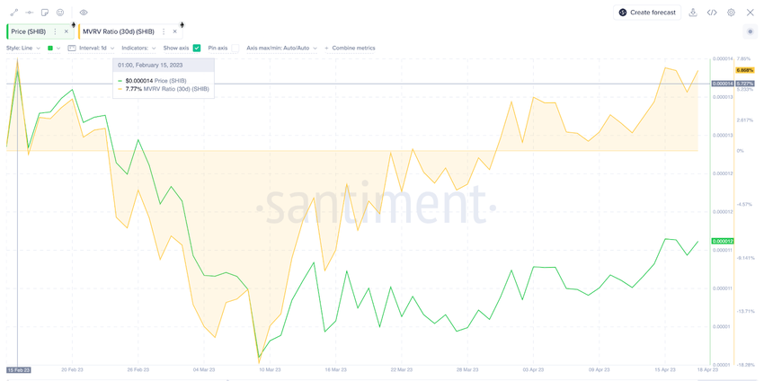 Mirando hacia atrás al 15 de febrero, la zona de ganancia del 7% culminó previamente en un techo local para SHIB.