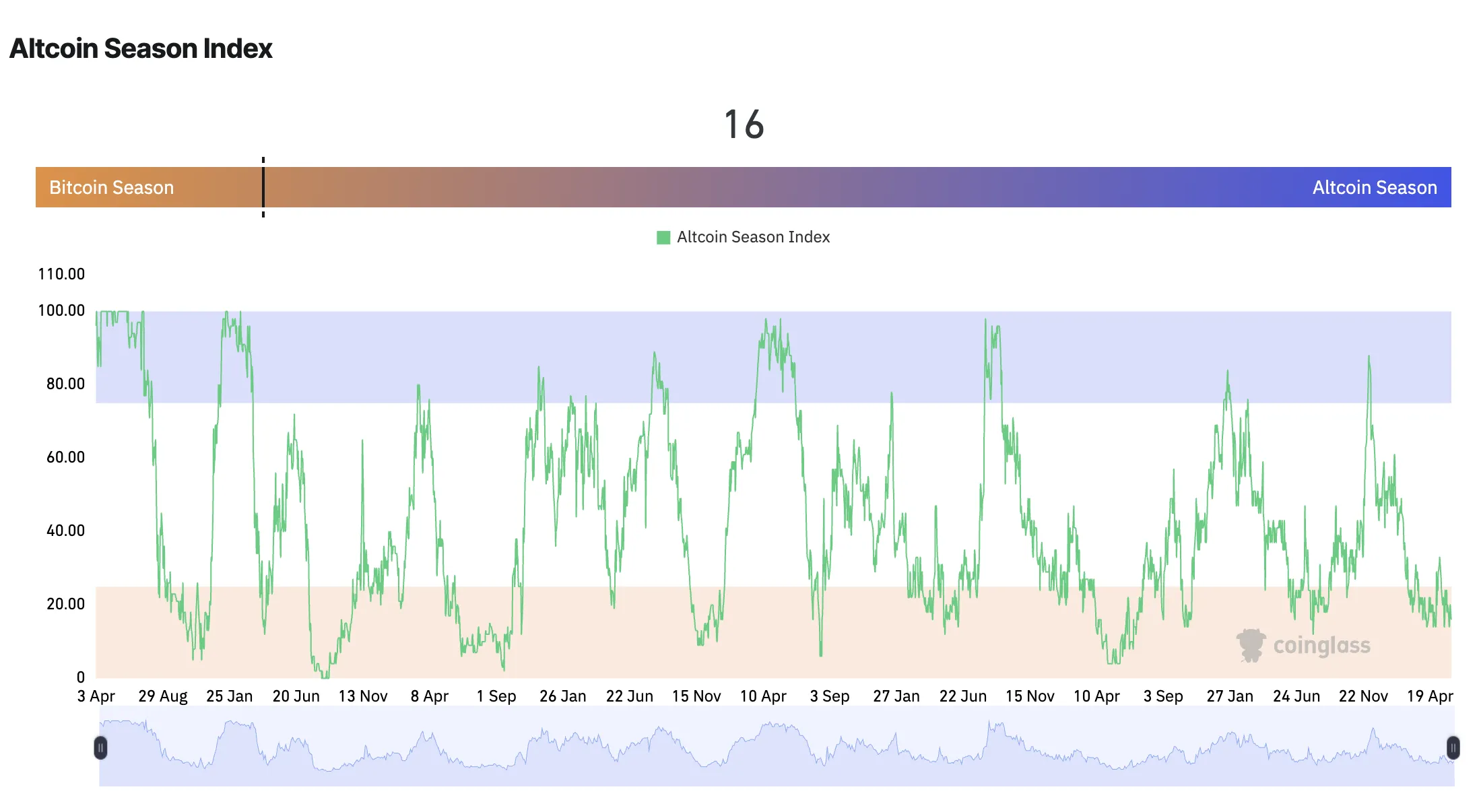 Si bien algunas monedas han visto fuertes ganancias recientemente, han sido aisladas. Además, los datos de Coinglass mostraron que el Índice de Altseason se situó en solo 16 al momento de la publicación. Esto ha generado preocupaciones sobre por qué el patrón de rotación de capital no se ha repetido.