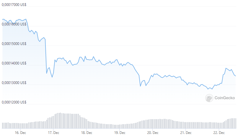 Tras el desplome, LUNC cayó a un mínimo de 0.000000999967 dólares. Desde entonces, ha aumentado un 13,500% para cotizar en 0.00013447 dólares, según los datos de CoinGecko.