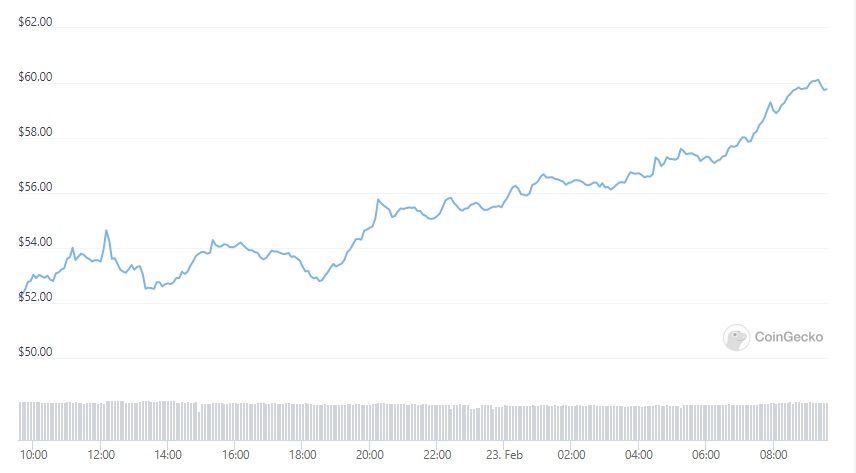 Tras darse a conocer la noticia, la reacción del precio del token LUNA no se hizo esperar. Al momento de la publicación, LUNA cotiza en 59.77 dólares, lo que representa un aumento de más del 14% en las últimas 24 horas, según los datos de CoinGecko.