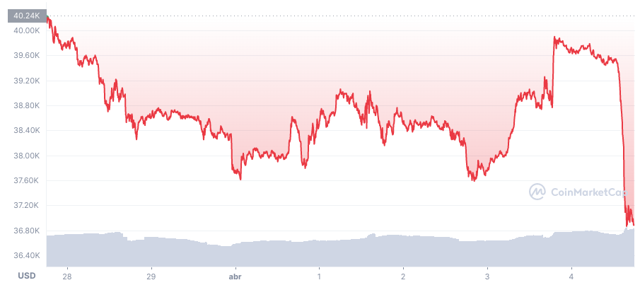 Sin embargo, ha continuado su tendencia a la baja. Al momento de la publicación, Bitcoin cotiza en 36,834.16 dólares, según los datos de CoinMarketCap.