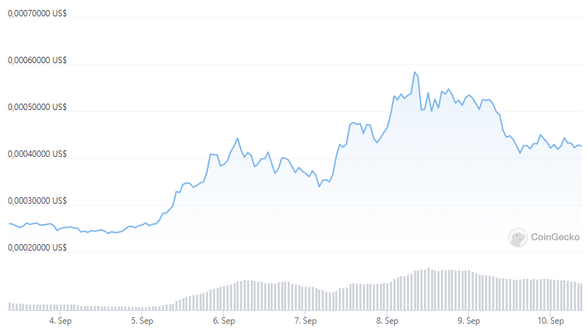 El pasado jueves 8 de septiembre, LUNC incluso llegó a registrar un aumento del 50% en 24 horas y del 424% en 14 días, justo en momentos en los que el mercado cripto en su conjunto registraba una caída considerable.