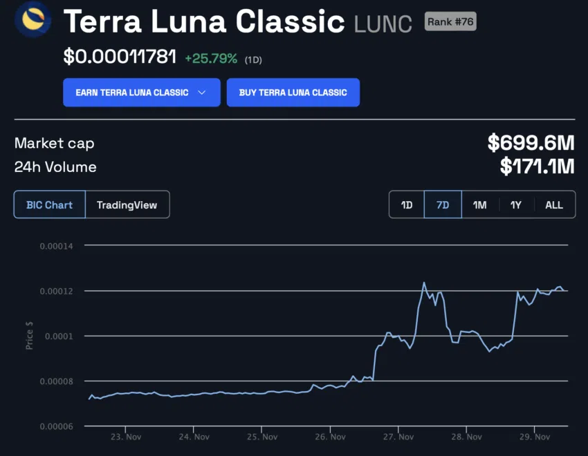 Los precios de TerraUSD Classic (USTC) y Terra Luna Classic (LUNC) se dispararon en medio de acontecimientos positivos para la red Terra Classic (Terra). Los aumentos y las numerosas transacciones en la red sugerían que el ecosistema Terra Classic estaba volviendo a la vida tras su colapso en 2021.