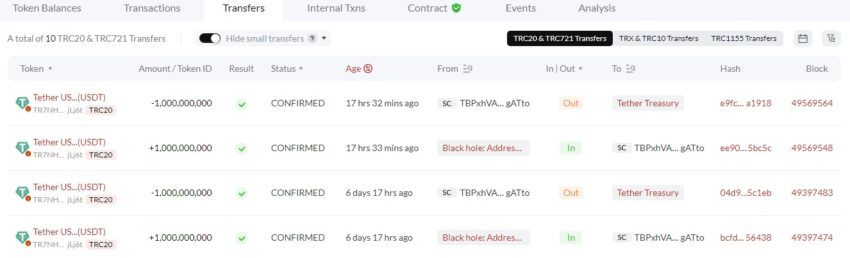 Tether ha acuñado 1 mil millones de dólares en USDT en la red TRON, que sigue a los miles de millones en USDT que acuñó durante la semana pasada. En los últimos siete días, Tether ha acuñado un total de 4 mil millones de dólares en USDT.