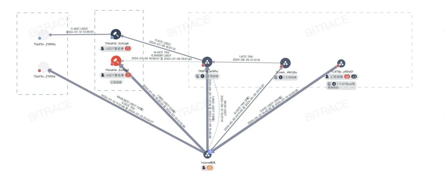 La firma de seguridad blockchain Bitrace informó que el monedero “TNVaKW” que contenía los tokens USDT congelados estaba vinculado al negocio de garantías del Grupo Huione de Camboya. Este monedero fue congelado apenas una semana después de ser activado el 9 de julio de 2024: