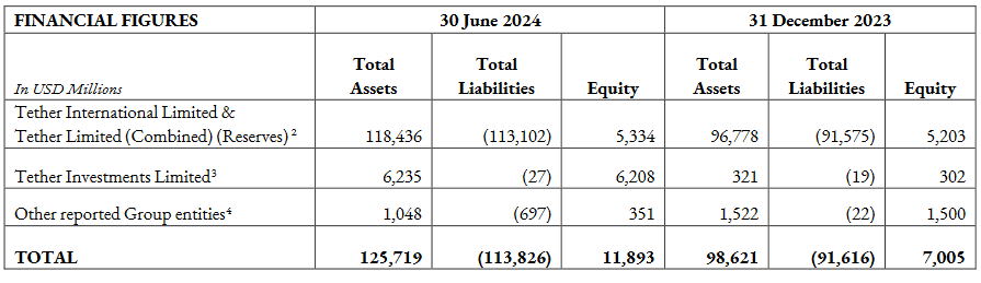 El informe confirma la exactitud de las cifras financieras consolidadas y del reporte de reservas de Tether (CFFRR), y proporciona detalles clave sobre la situación financiera del grupo al 30 de junio de 2024.