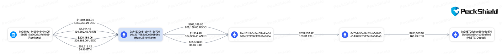 Sin embargo, los hackers ya cambiaron USDC y Ankr por ETH y los transfirieron al exchange HitBTC.
