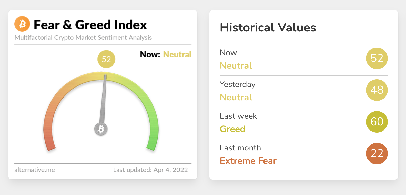 En marzo el indicador se encontraba en niveles de miedo extremo y en tan sólo unos días esta percepción ha virado de manera positiva, descansando sobre la zona neutral. Queda claro que el precio de bitcoin es igual de volátil que la psicología del inversor de criptomonedas.