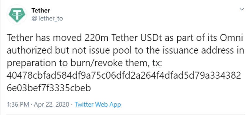 SponsoredEsta mañana, Tether también anunció que quemaría unos 220 millones de USDT.