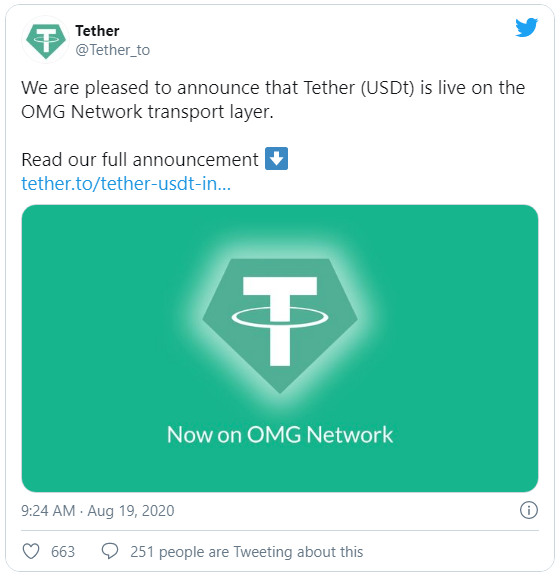 El exchange socio de Tether, Bitfinex, ha comenzado a utilizar la red OMG para facilitar depósitos y retiros de USDT más rápidos y rentables en tiempos de alta demanda.