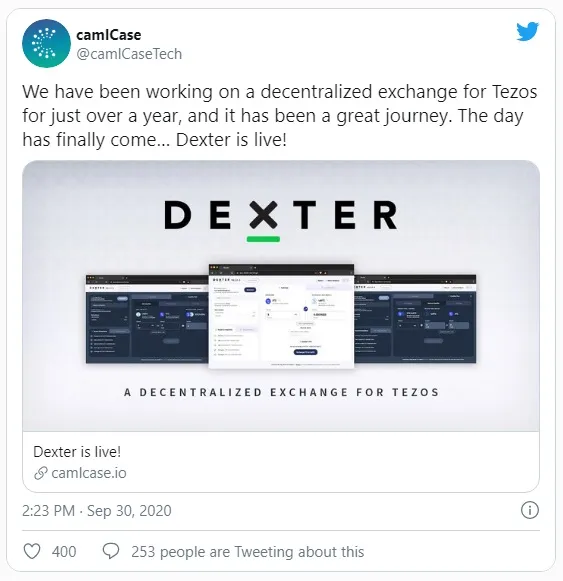 DeFi ya no es solo para Etheruem. El 30 de septiembre de 2020, camlCase, un desarrollador de productos para Tezos, anunció el lanzamiento de Dexter, un exchange descentralizado de tokens de Tezos.