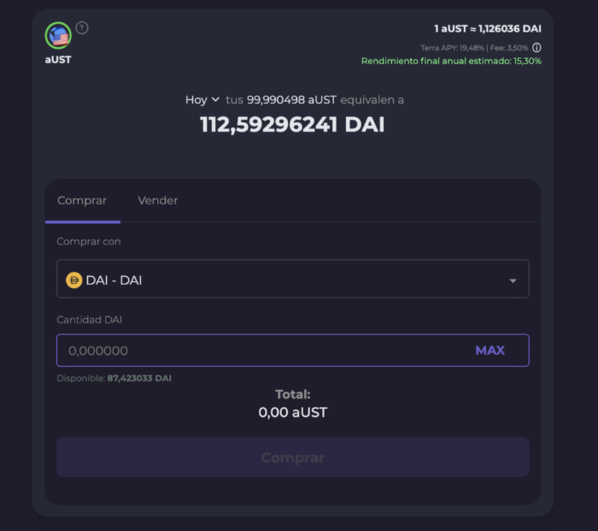 aUST es un token emitido por Anchor Protocol (un protocolo que corre en la red Terra), el cual aumenta de valor constantemente en UST dependiendo de la tasa de interés que ofrezca el protocolo.