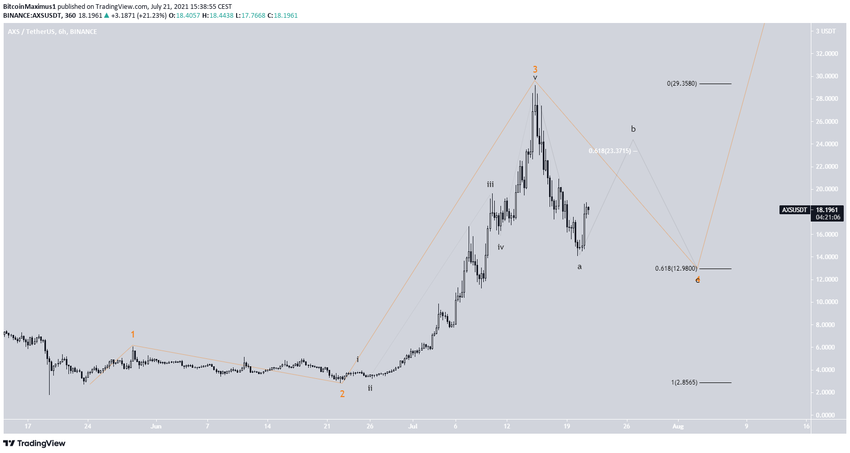 Por lo tanto, se esperaría que AXS aumentara hacia el área de resistencia de retroceso de Fibonacci de 0.618 a 23,3 dólares antes de caer una vez más, completando la estructura correctiva de la onda cuatro.