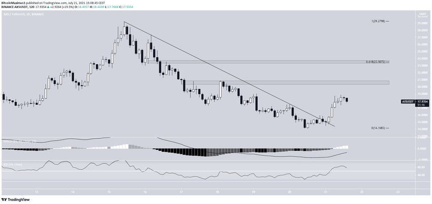 El gráfico de dos horas a corto plazo muestra que AXS ha salido de una línea de resistencia descendente que había estado en su lugar desde el máximo histórico del 15 de Julio.
