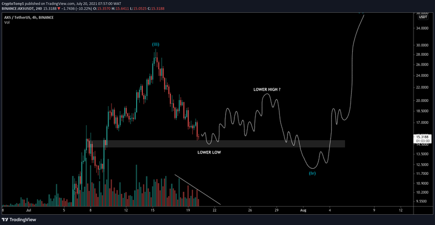 Axie Infinity (AXS) se ha estado moviendo hacia abajo desde que alcanzó un precio máximo histórico de 29,2 dólares el pasado 15 de Julio.
