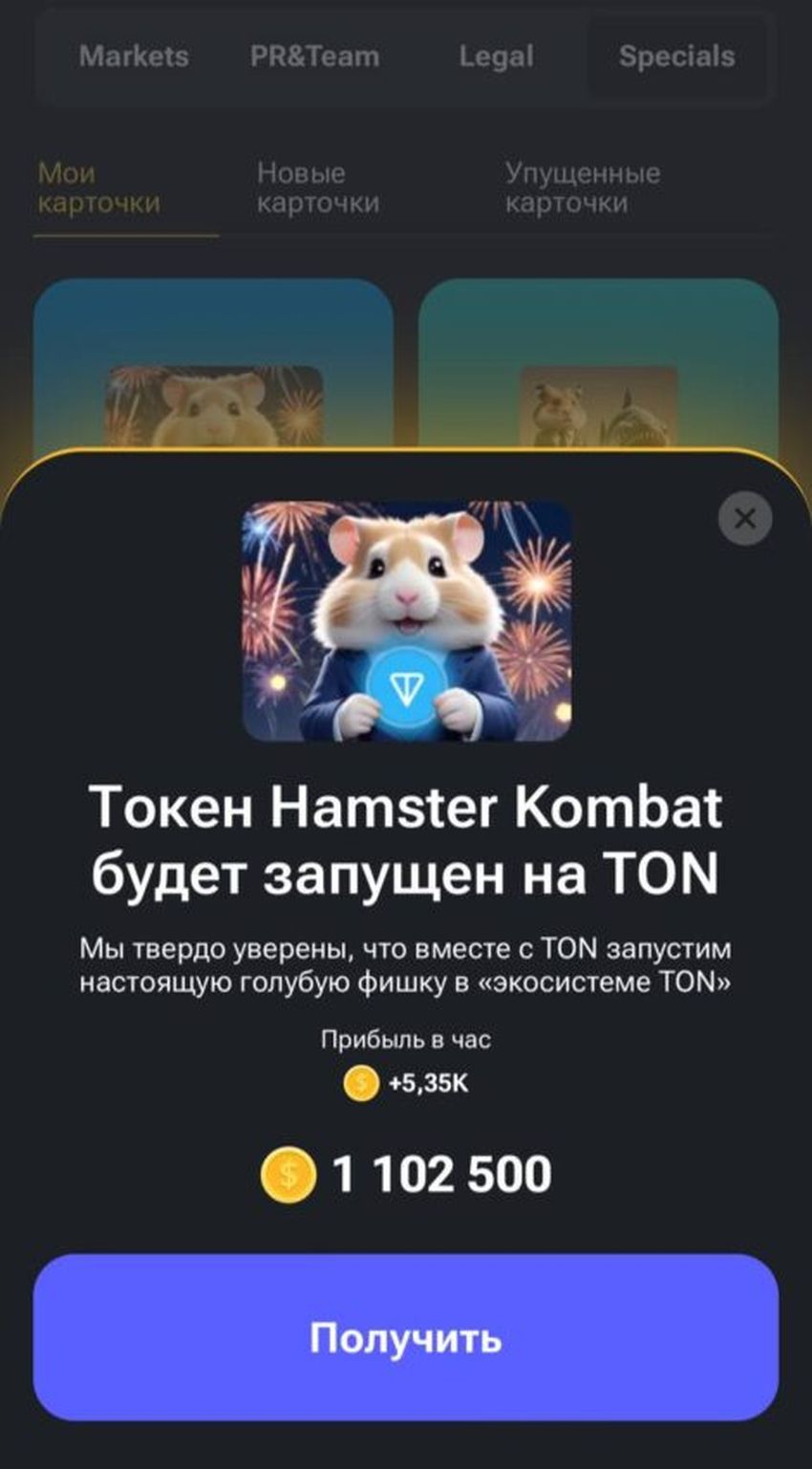 Según el mensaje, en honor a unirse al ecosistema TON, apareció una tarjeta especial en Hamster Combat. Al comprarlo, los usuarios podrán recibir una recompensa.