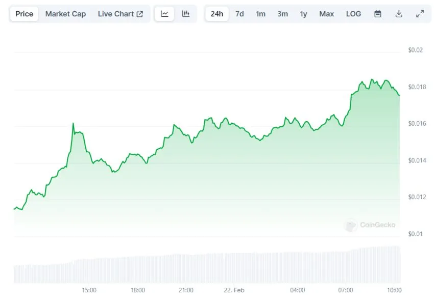 La capitalización de la criptomoneda es de 860 millones de dólares. El volumen de operaciones en las últimas 24 horas ha aumentado 104% y superó los 1,600 millones de dólares. Actualmente están en circulación un total de 48,419,999,999 tokens de un suministro total de 50 mil millones de monedas.