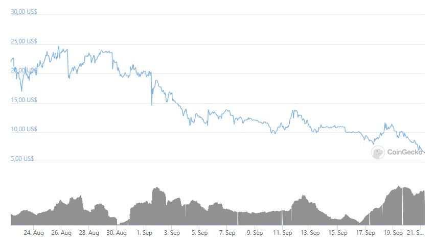 A primeras horas del martes 21 de septiembre, el token $PVU registró un nuevo mínimo histórico en 6.51 dólares, continuando así con la caída de precios iniciada a finales de agosto.