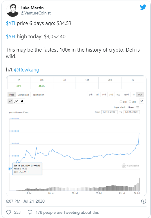 Pero la mayor parte de la atención en el token YFI en este momento se debe a la agricultura de rendimiento y a los saltos de precios, no a la utilidad del token, por útil que sea. Los fundadores de Yearn.finance no parecen preocupados por el mal uso del token.