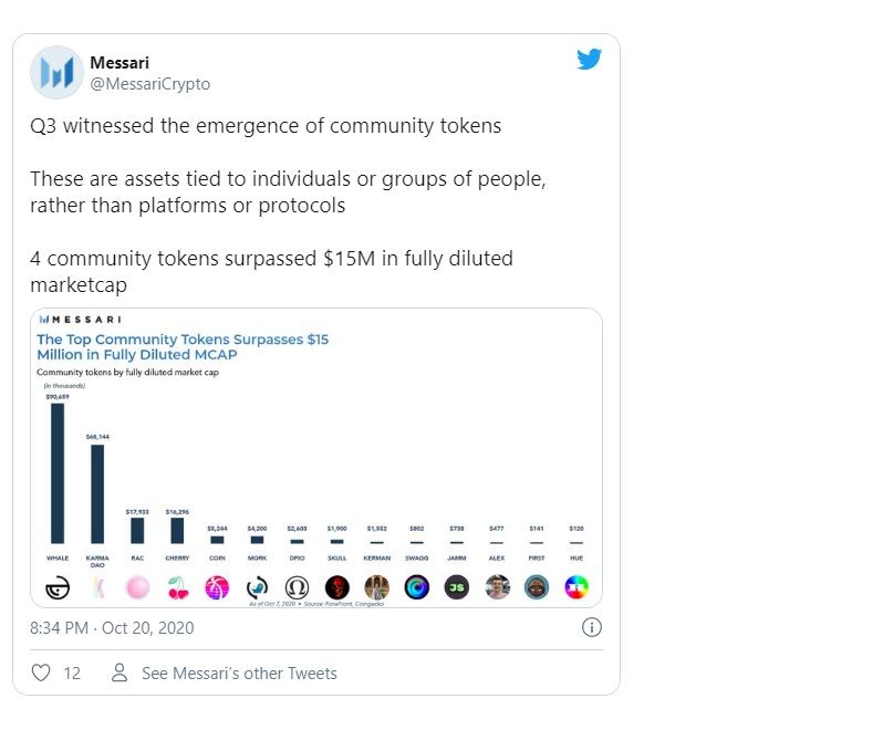 Las cosas han mejorado en 2020 a medida que el auge de DeFi ha anunciado nuevas formas de lanzar tokens. La última moda es la aparición de tokens comunitarios o sociales que han ganado popularidad en el tercer trimestre.