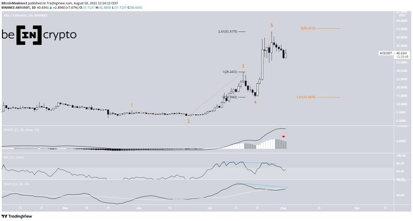 Axie Inifinity (AXS) alcanzó un nuevo precio máximo histórico de 53,50 dólares el 27 de julio, completando potencialmente un impulso alcista.