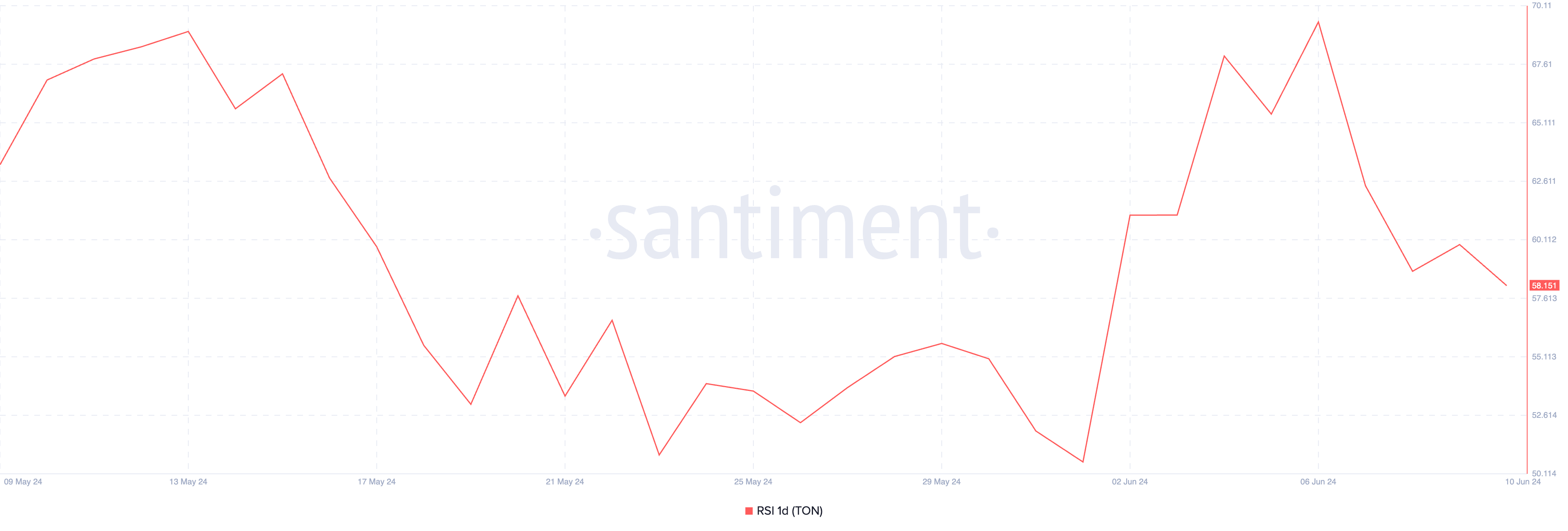Además, la caída del Índice de Fuerza Relativa (RSI) de TON, como se observó on-chain, confirmó el aumento de la presión de venta. Al cierre de esta edición, este indicador tendía a la baja y arrojaba un valor de 58.
