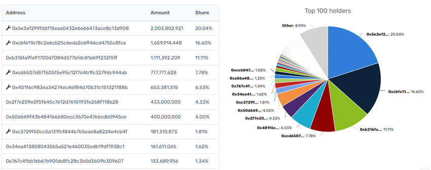 Las direcciones oficiales que pertenecen a los contratos de Polygon Network representan la gran mayoría de las participaciones, como el holder principal, que es el contrato de staking que contiene aproximadamente el 20% del suministro en más de dos millones de tokens MATIC.
