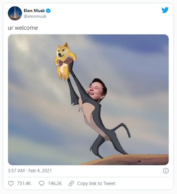 También aludió a uno de los promotores más influyentes de Dogecoin. Como BeInCrypto informó anteriormente, el CEO de SpaceX y Tesla, Elon Musk, ha hecho numerosas menciones alegres de la criptomoneda inspirada en memes.