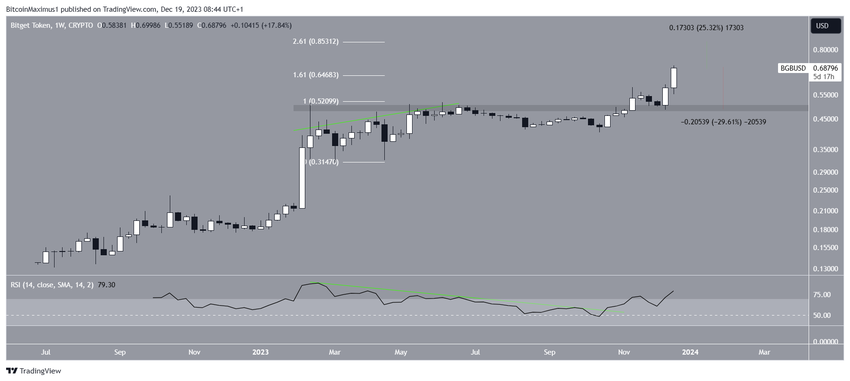 A pesar de esta predicción alcista del precio de BGB, un cierre por debajo de 0.65 dólares puede provocar una disminución del 30% hasta el soporte más cercano de 0.50 dólares.