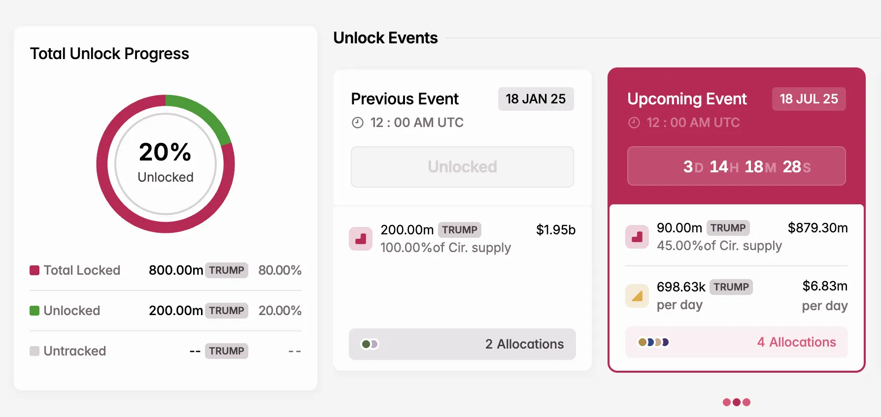 - Número de Tokens a Liberar: 90 millones de TRUMP (9% del Suministro Total)