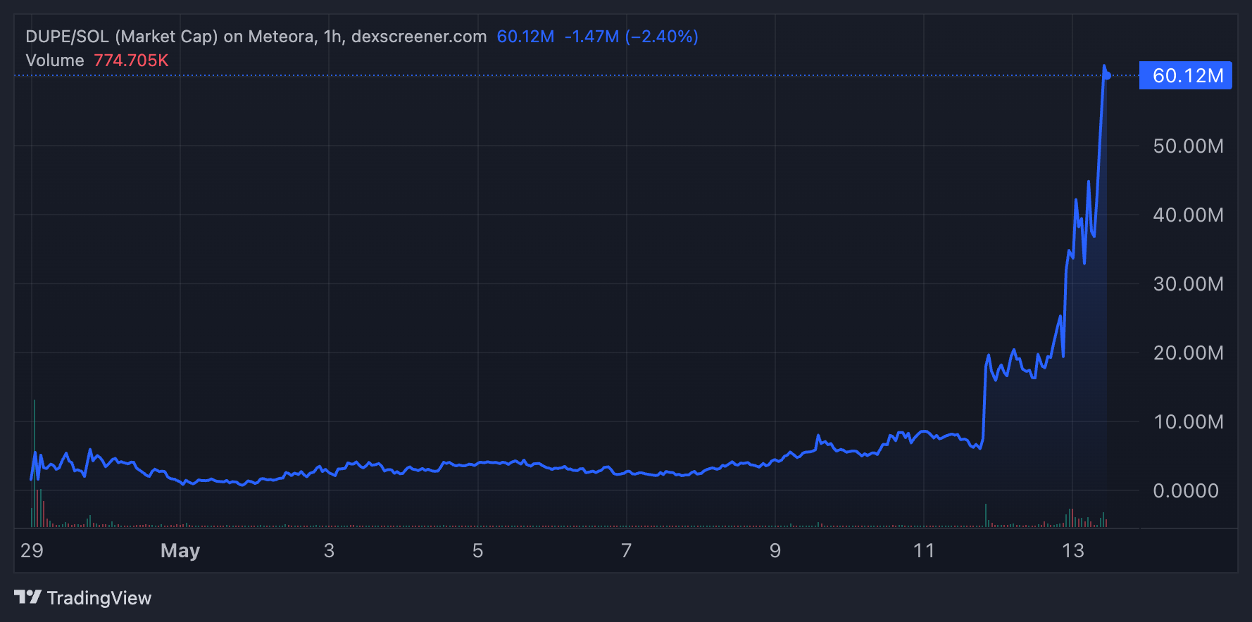 El token ha atraído a 4,720 holders y tiene una capitalización de mercado de 601 millones de dólares. Su precio ha aumentado un 209% en el último día. Al momento de escribir, DUPE se negociaba a 0.060 dólares.
