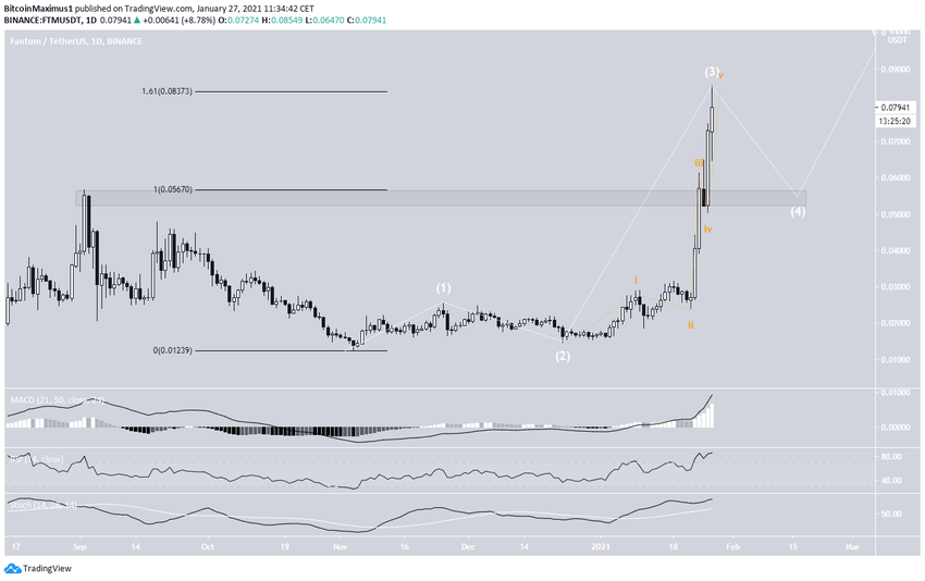 El 25 de enero, la altcoin FTM alcanzó un máximo de 0,0649 dólares, un nuevo máximo histórico. Se movió ligeramente por encima de eso el 2 de septiembre de 2020. El FTM ha estado subiendo después de validar el nivel de ruptura en 0,055 dólares, tocando hasta ahora un máximo de 0,085 dólares.